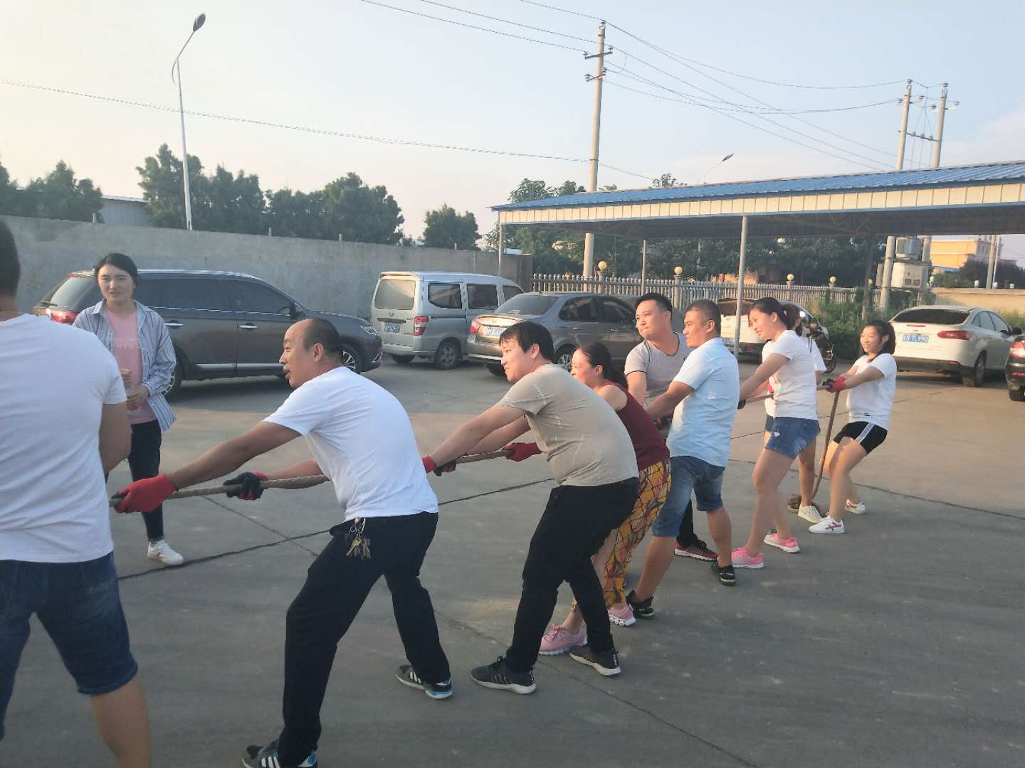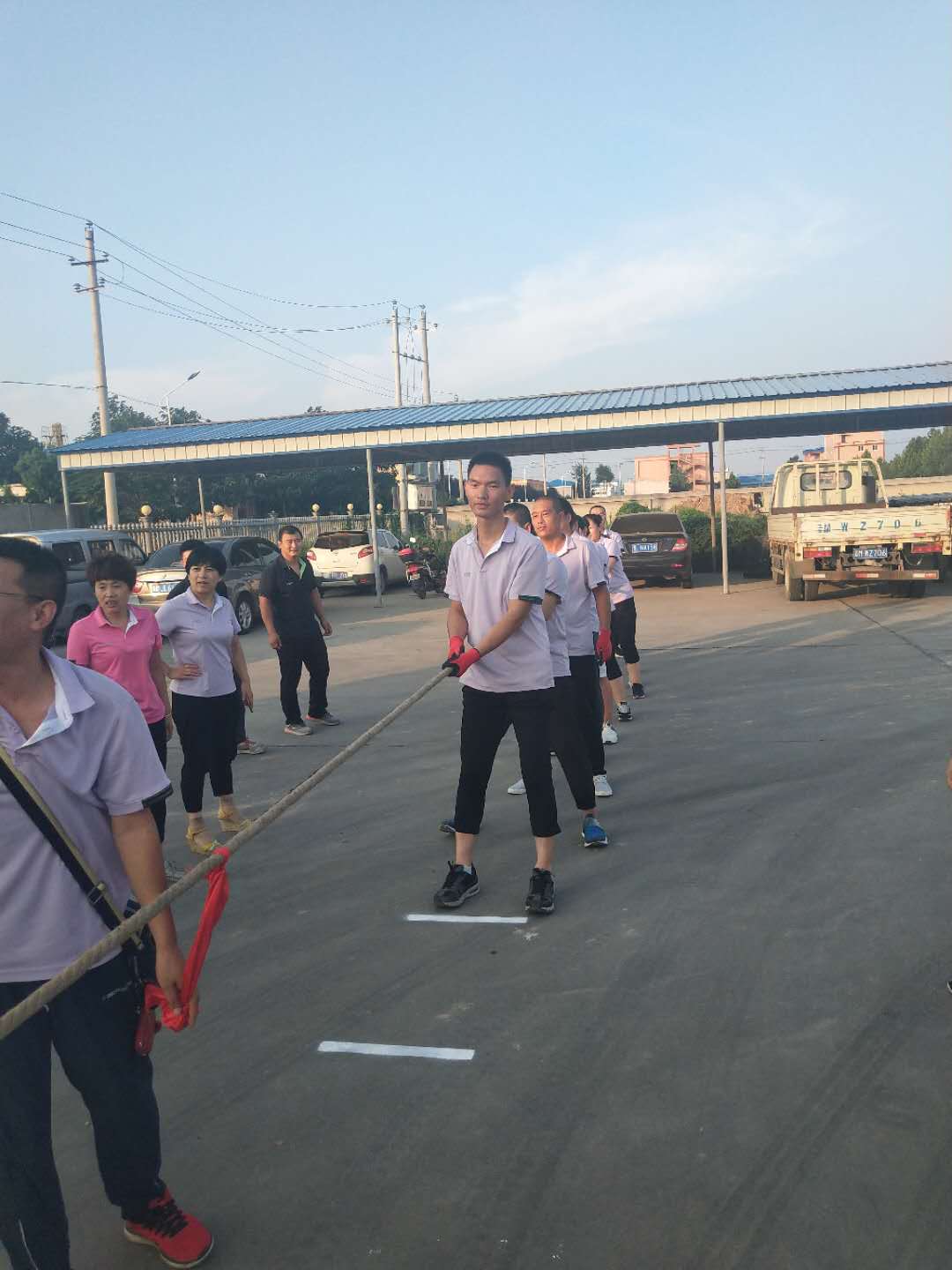 當(dāng)比賽的哨聲響起,只見參賽的隊(duì)員們緊握長(zhǎng)繩,卯足了勁拼命往后拉!公司領(lǐng)導(dǎo)也在隊(duì)伍旁邊助陣!